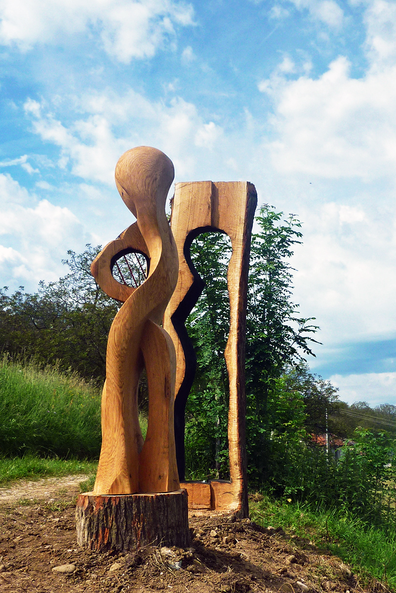 Mais la vision est aussi intérieure. Sur l’autre face de la sculpture, on accède à l’intimité, on retrouve le cocon protecteur du ventre maternel.