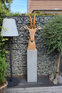 LE PROJET : Que sommes-nous devenus ? Sommes-nous encore nous-même ? De renoncements en abandons, nous avons laissé tomber ce qui fait le bonheur de vivre, ce qui compose notre personnalité. Nous nous pensons uniques et intègres et sommes pourtant faits de morceaux hétéroclites mal assemblés. Avons-nous oublié les joies intenses et la flamboyante énergie de notre moi profond ? Mes sculptures animalières sont à la recherche de cette énergie. Par la représentation de la figure animale elles interrogent notre identité. Elles sont le miroir de ce qui est en nous candide, fort et joyeux.