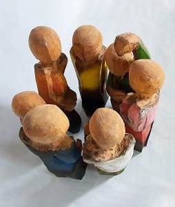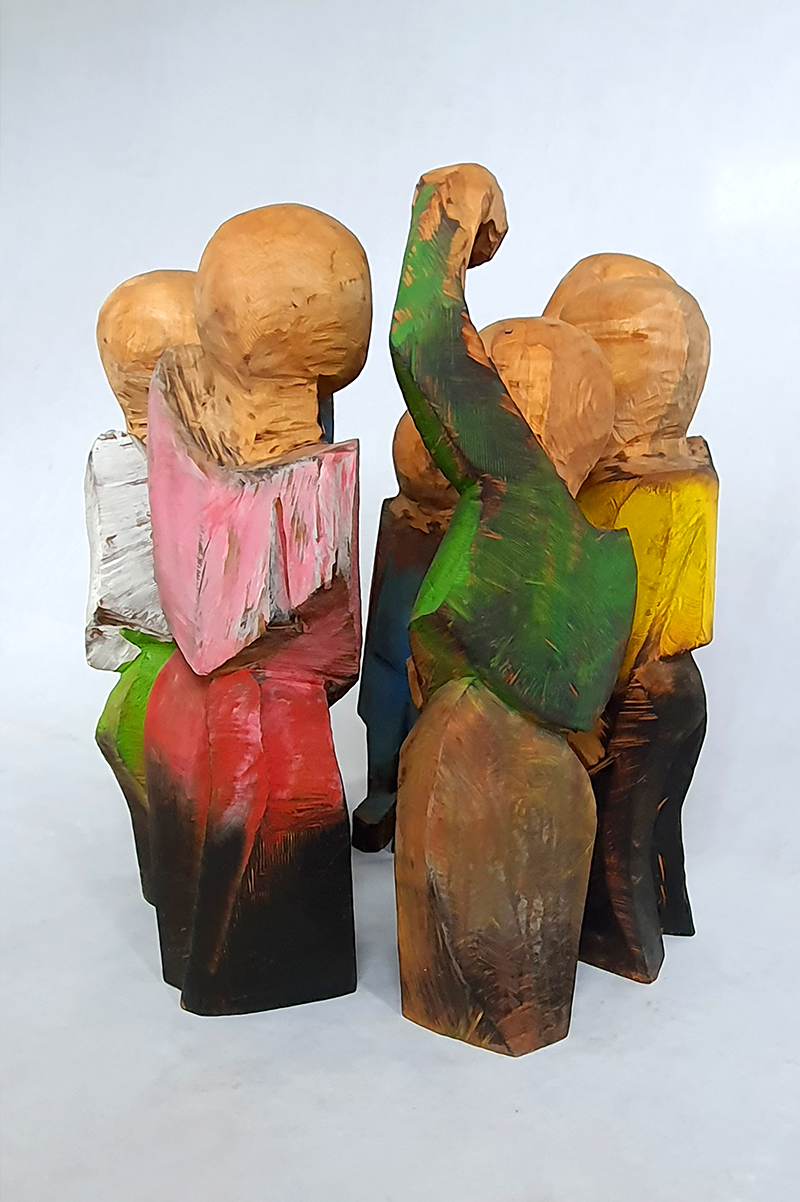 Série: Les enfants de Bentlage Soudain, il y a les autres, tous les autres.Jouer, courir jusqu´à manquer de soufflepour s´étourdir, pour étreindre ce cœur, seulabandonné au vaste monde. Enfant 1 Bois d´érabledimensions: 60x25x20cm Enfant 2 bois d´érabledimensions: 70x25x22cm Enfants 3 et 4 Bois d´érabledimensions: 70x25x20cm Les Enfants de Bentlage Bois d´érabledimensions du groupe: Ø=130cm H=80cm Soudain, il y a les autres, tous les autres.Jouer, courir jusqu´à manquer de soufflepour s´étourdir, pour étreindre ce cœur, seulabandonné au vaste monde. Retour
