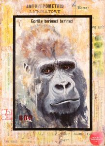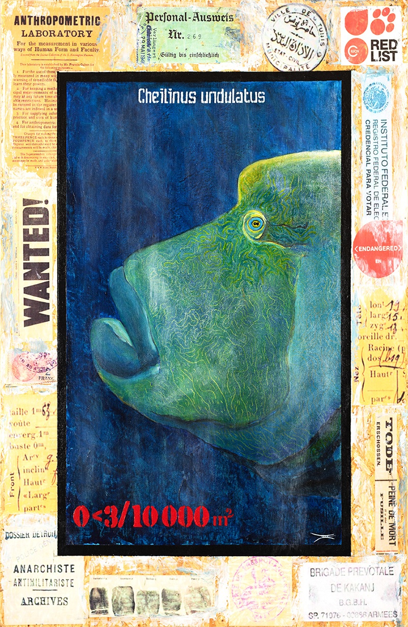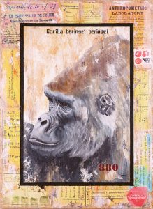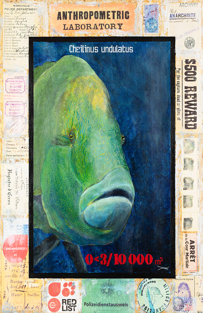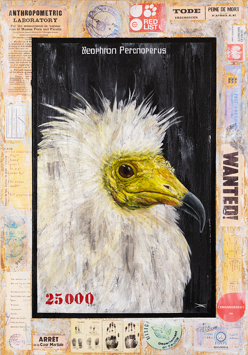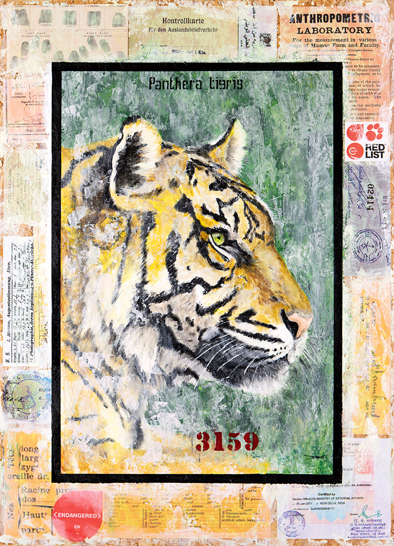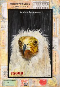 Installation composée de 16 tableaux représentant huit espèces animales menacées,