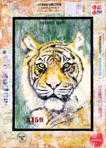 Technique mixte: toile lin sur bois compressé, plaquages, collages, impressions, peinture Acrylique.
